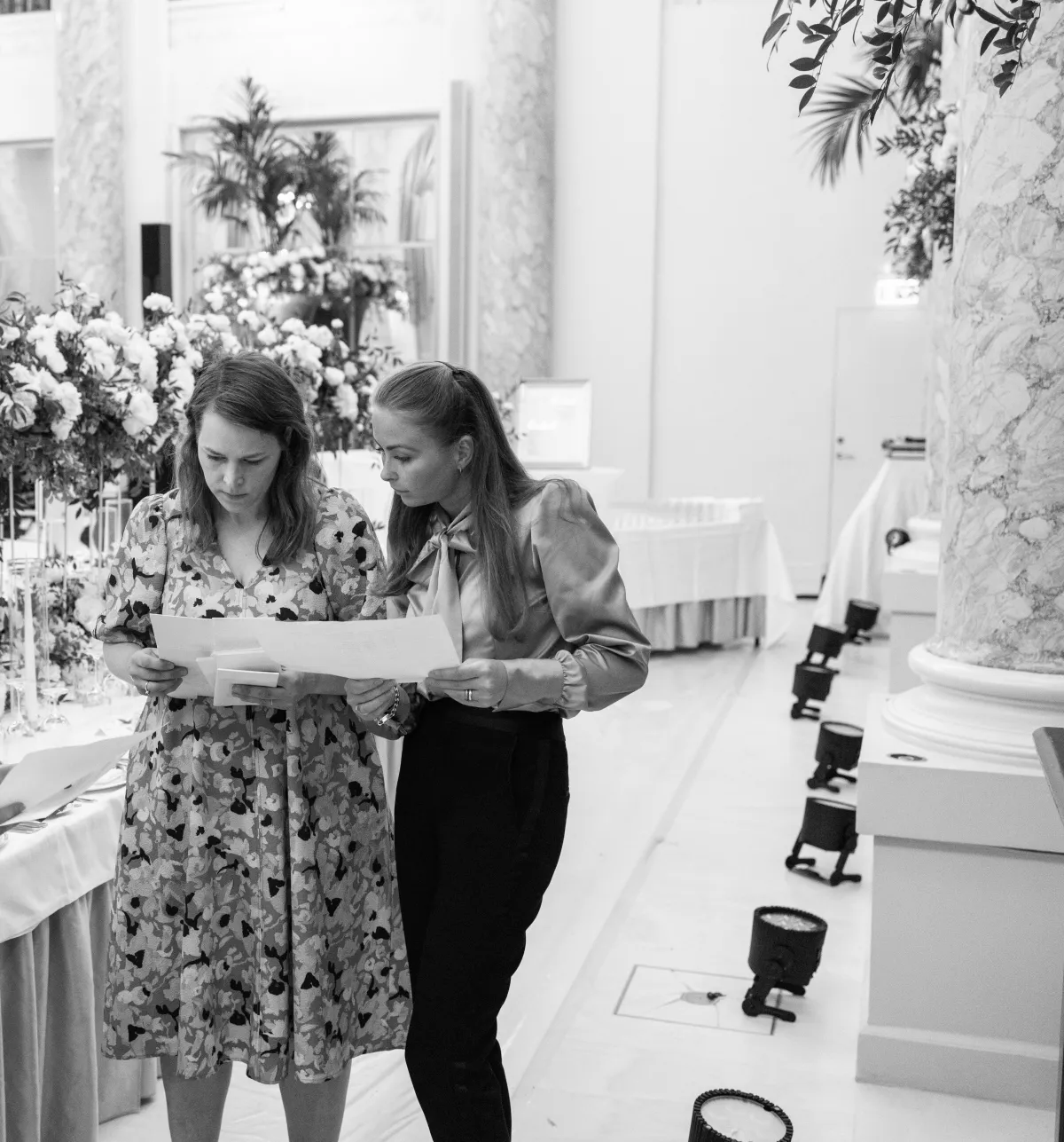 2️⃣ Andet møde (2 uger før brylluppet): Vi gennemgår den endelige plan, bekræfter alle detaljer og sikrer, at alle leverandører er briefet og klar til dagen.